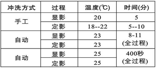 若自动显影冲洗处理,温度高且显影时间长时可能要偏离以上胶片的体系级别。